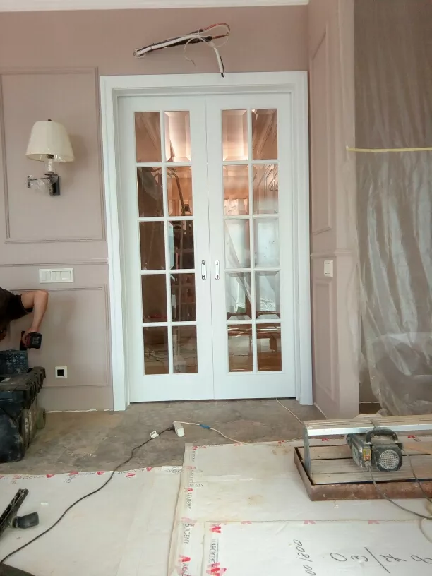 пантографирования, с правильными пропорциями. Два вертикальных руста подчеркивают их красоту. Для полотен под стекло предлагаются различные варианты стекол. Стекла устанавливаются с помощью фигурного штапика. Доступна модель с «английской решеткой». Различные варианты окрашивания делают двери важным элементом в интерьере, а при желании – акцентом.