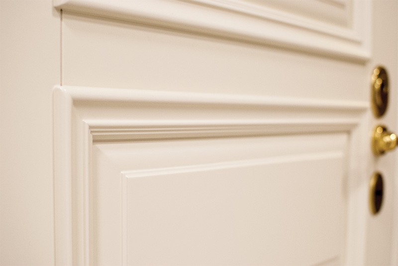— панель с багетом изготовлена из влагостойкого мдф толщиной от 12 до 24мм. Окрашена матовой краской по технологии SoftTouch обеспечивает шелковистое, мягкое покрытие. Итальянский сверхпрочный лак, обеспечивающими защиту от изменения цвета, растрескивания и отслоения.Не смотря на то, что покрытие приятно на тактильные ощущения, оно совершенно неприхотливо к уходу. За дверями легко ухаживать в ходе обычной влажной уборки, без использования какой-либо активной химии.